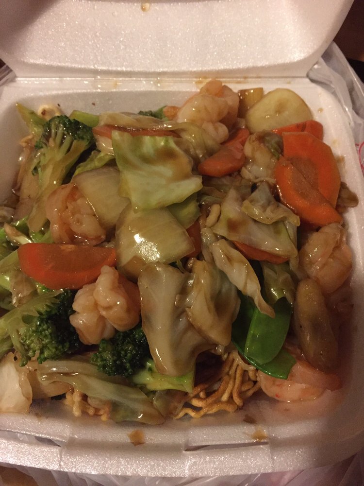 Old school Americanized Cantonese Chinese food. Rice, noodles and meats that were prepared in the same way for last 60 years. Good fresh and crisp vegetables although I get a hint of MSG stickiness after eating. I really enjoy the restaurant and service from women who have been here since Ford. A locals favorite. Chow mien prepared several ways. Just too much breading on fried prawns.